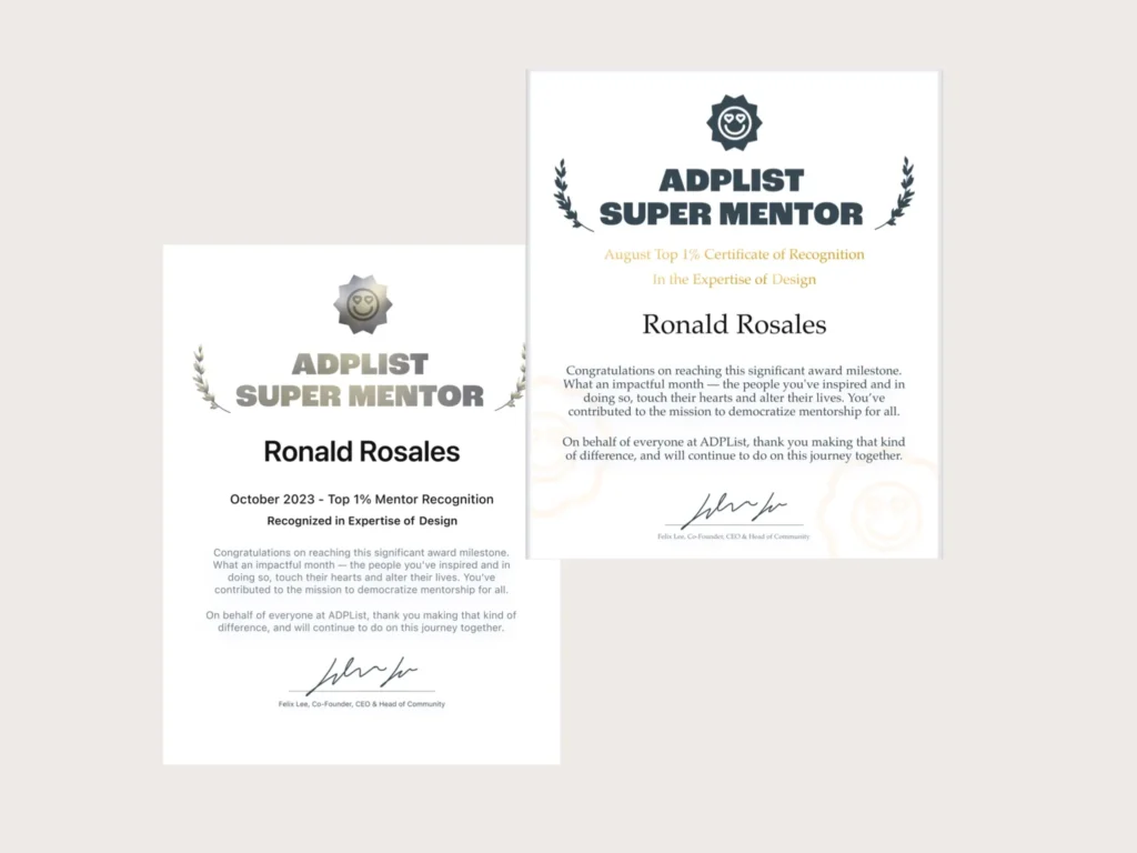 The cherry on top? Being recognized as a Top 1% Mentor in Design and earning the title of an ADPList Super Mentor. It was validation that my efforts were making a difference. People are enjoying the conversations we’re having, and that’s simply amazing.